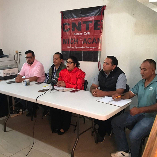 Morelia, Mich., a 16 de octubre de 2025.- La Coordinadora Nacional de los Trabajadores de la Educación (CNTE) salió en defensa de las recientes movilizaciones estudiantiles y demandó al Gobierno de Michoacán el restablecimiento de las plazas automáticas para los egresados de las escuelas normales.