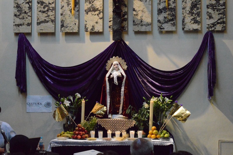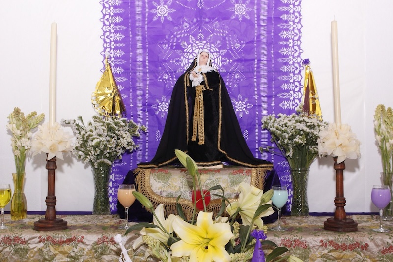 Esta tradición arraigada en nuestro país tras la Conquista, más allá de su carácter religioso, conserva una expresión de profunda riqueza simbólica y estética. El altar se compone de varios elementos que representan la pasión de Cristo y el sufrimiento de la Virgen.