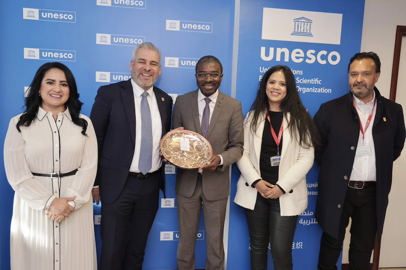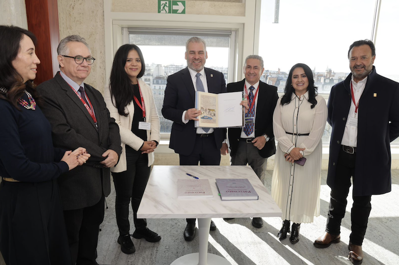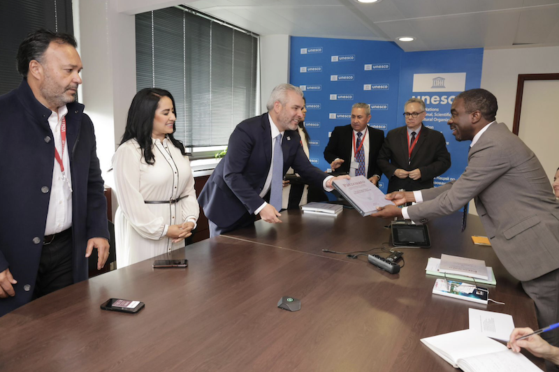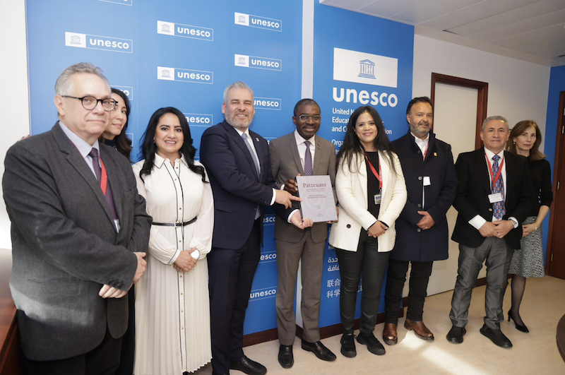 París, Francia, 27 de enero de 2025.- El gobernador Alfredo Ramírez Bedolla entregó a la Organización de las Naciones Unidas para la Educación, la Ciencia y la Cultura (Unesco) el expediente para que Pátzcuaro obtenga el reconocimiento de Patrimonio Mundial en la categoría de Sitio de Memoria Histórica.