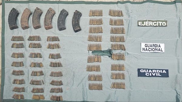Al ahora indiciado le fue asegurado un vehículo marca Volkswagen con reporte de robo, en el que además transportaba 420 cartuchos útiles de distintos calibres y seis cargadores; todo lo asegurado fue puesto a disposición de la autoridad competente.
