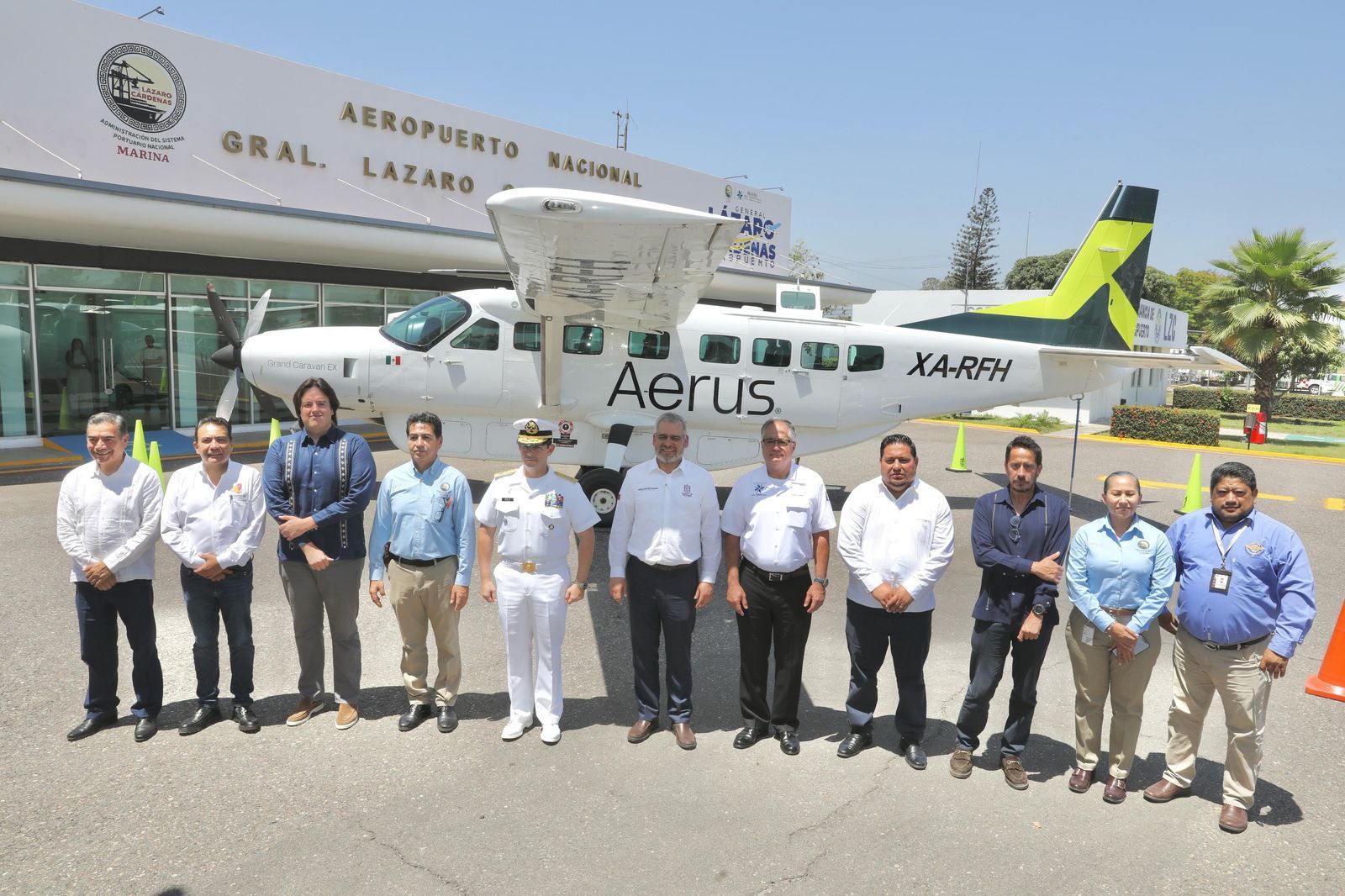 Así como el director general del Grupo Aeroportuario de Ciudad de México, Juan José Padilla Olmos; el comandante del Aeropuerto de Lázaro Cárdenas del Río, Leonel Castañeda Vargas; Ana Chávez Alemán en representación de la Asipona; el director Comercial de Aerus, Miguel Legorreta Hernández; empresarios y autoridades municipales.