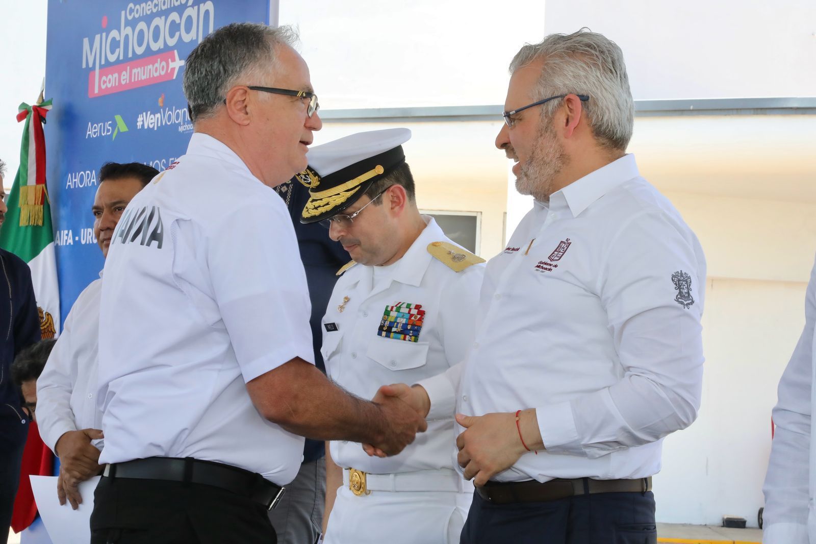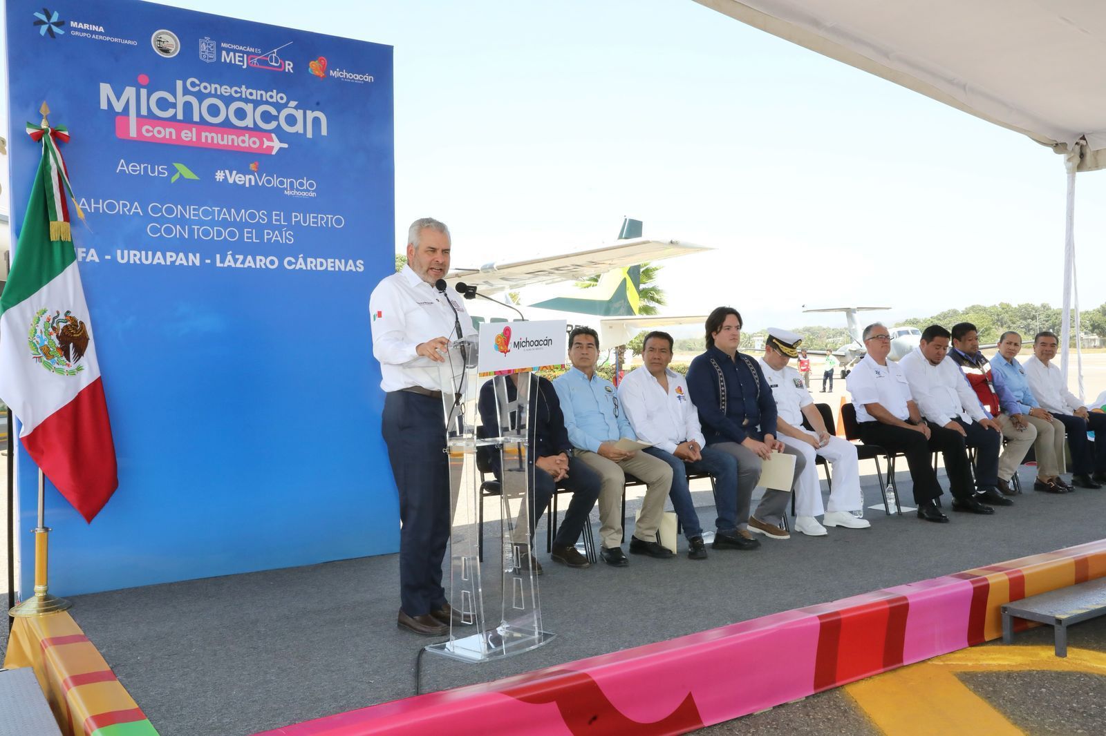 Ramírez Bedolla destacó que las rutas aéreas aportan una doble ventaja porque a partir del 7 de abril llegarán a Uruapan y Lázaro Cárdenas, considerados como dos de los tres motores económicos de Michoacán, junto con Zamora, vuelos comerciales de lunes a viernes y los días domingo.