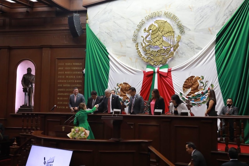 Al abordar la Tribuna, la diputada Sandra María Arreola Ruíz, destacó la importancia del acto en el que el Congreso del Estado entrega una de sus más altas distinciones, a una institución que encarna la vocación de servicio, la honestidad profesional y la defensa del Estado de Derecho.