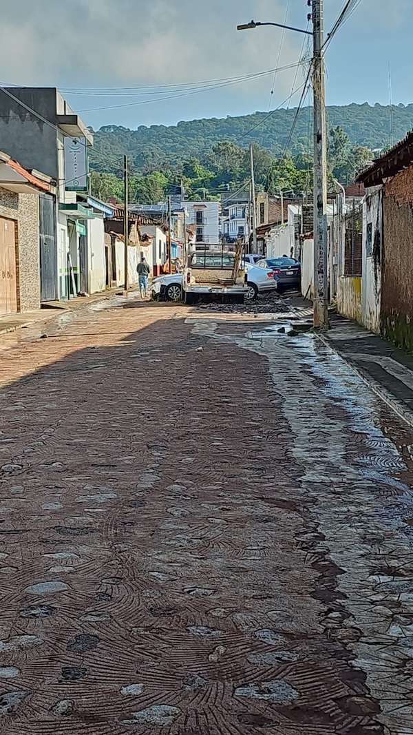 Morelia, Mich., a 15 de julio del 2025.- Un arroyo que atraviesa la cabecera municipal de Villa Morelos se desbordó la madrugada de este martes. El saldo es de inundaciones que afectaron al menos 24 viviendas y al menos una decena de vehículos particulares, según confirmaron autoridades estatales de Protección Civil.