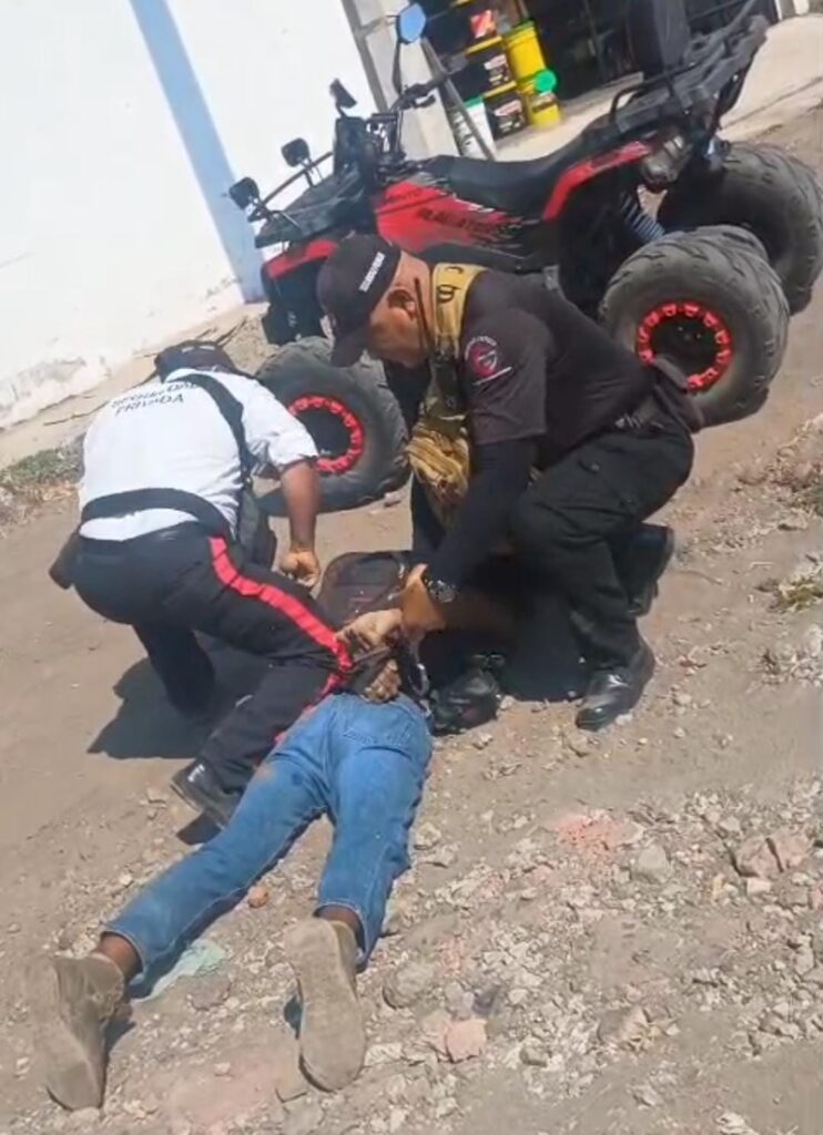 Apatzingán, Mich., a 26 de Noviembre de 2025.- Elementos de seguridad privada del Grupo “Fénix” detuvieron a un conocido indigente de esta ciudad, identificado por el apodo de “El Pípila”, tras ser descubierto conduciendo una cuatrimoto que, según los reportes iniciales, había sido robada. El incidente tuvo lugar en una transitada zona de la ciudad, generando la movilización de las autoridades locales.