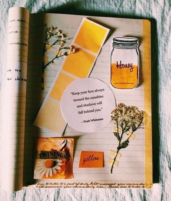 Puedes pegar en las hojas de tu diario pedazos de tu día. La bolsita de té, alguna planta, un boleto, etc…