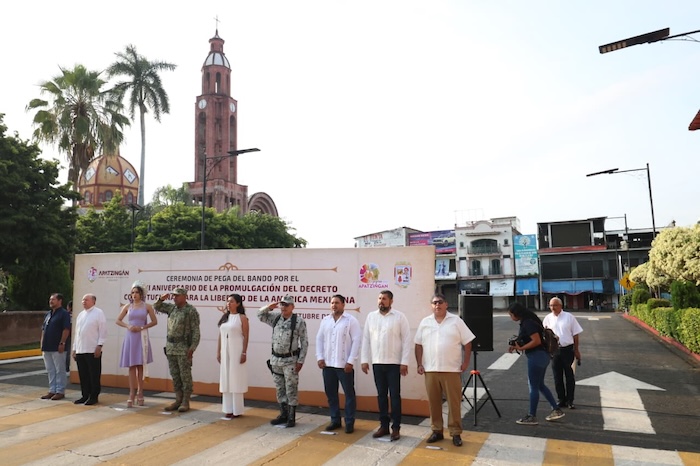 Apatzingán, Mich., a 1 de octubre de 2025.- El Gobierno Municipal de Apatzingán, encabezado por la presidenta Fanny Arreola, realizó la ceremonia oficial de pega del programa de actividades en bando solemne, con la cual se dio inicio a las festividades conmemorativas por el CCXI aniversario de la promulgación del Decreto Constitucional para la Libertad de la América Mexicana.