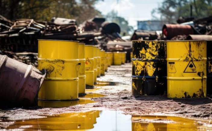 En el sitio de disposición de los residuos se localizaron 10 zanjas donde se realiza el depósito de residuos aceitosos con características líquidas a semi-sólidos de coloración café claro a café obscuro, correspondiendo a “residuos de proceso de destilación de glicerina”, y otros residuos como tarimas de madera, residuos plásticos, arenas de color negro y tambores metálicos de 200 litros.