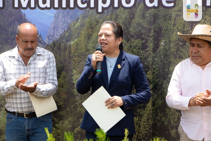 Destacó que hoy se entregan 100 mil plantas de pino en diferentes especies que serán distribuidas en las 10 tenencias del municipio, para reforestar los predios que de alguna u otra forma sufrieron deterioro debido a los incendios forestales, estando segura de que todos actuarán con responsabilidad y serán los guardianes para cuidar y ver crecer a cada uno de los árboles que se estarán plantando, invitó a la sociedad en general a participar en las reforestaciones que se realizarán próximamente, ya en su debido momento se estarán anunciando, porque en Hidalgo juntas y juntos avanzamos.