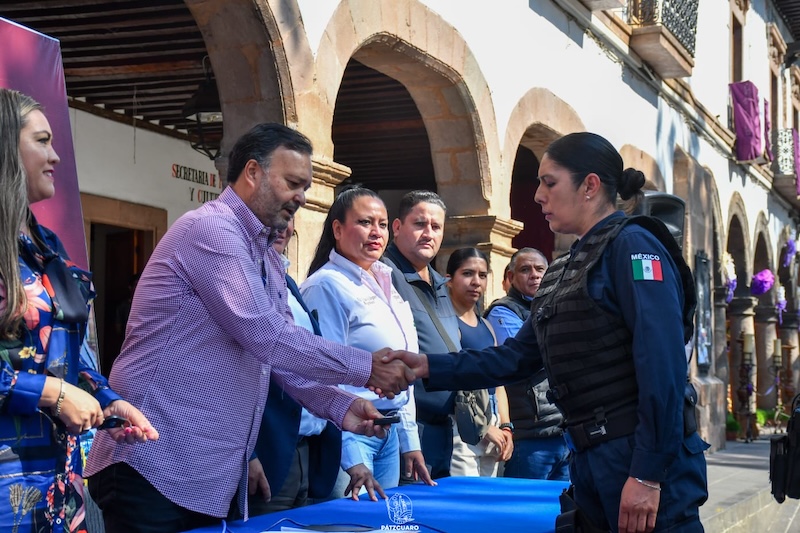 Pátzcuaro, Mich., a 21 de abril de 2025.– El presidente municipal de Pátzcuaro, Julio Arreola, encabezó la entrega de dos patrullas y dos vehículos destinados a la Secretaría de Seguridad Pública y a la Secretaría de Servicios Generales y Públicos, con el objetivo de mejorar la atención a la ciudadanía y reforzar las labores de seguridad.