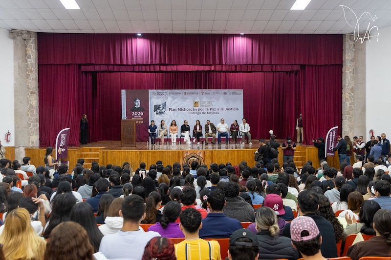 Frente a cientos de estudiantes nicolaitas, indicó que este día no sólo culminan un trámite para recibir la tarjeta que les dará la posibilidad de contar con una beca, “trasciende muchísimo más lejos de lo que podríamos imaginar, cuando la presidenta de la República, Claudia Sheinbaum, hace la propuesta de este beneficio económico para todas y todos ustedes, no se refiere a esa cantidad de recursos, se refiere al impacto que tiene para concluir sus sueños, sus esperanzas, su carrera”.