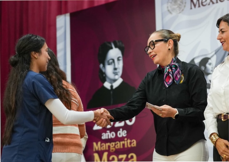 La secretaria de Educación, Gabriela Molina Aguilar, comentó que la beca Gertrudis Bocanegra no sólo simboliza mil 900 pesos bimestrales, sino la absoluta confianza que hay en un gobierno humanista y de transformación. Detalló que para las y los alumnos de la Facultad de Odontología se estarán entregando dos mil 345 becas, “nunca antes se había creído tanto en las juventudes, el presente y el futuro está en las aulas de la Universidad Michoacana de San Nicolás Hidalgo, enhorabuena y muchas felicidades”.