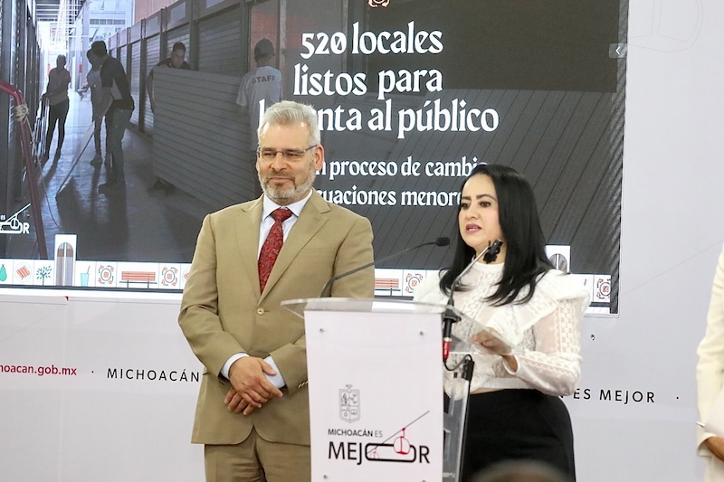 Durante la rueda de prensa encabezada por el gobernador Alfredo Ramírez Bedolla, la arquitecta Butanda Macías señaló que la Secretaría de Gobierno asignó mediante un proceso justo, ordenado y transparente el 100 por ciento de los locales disponibles en el mercado.