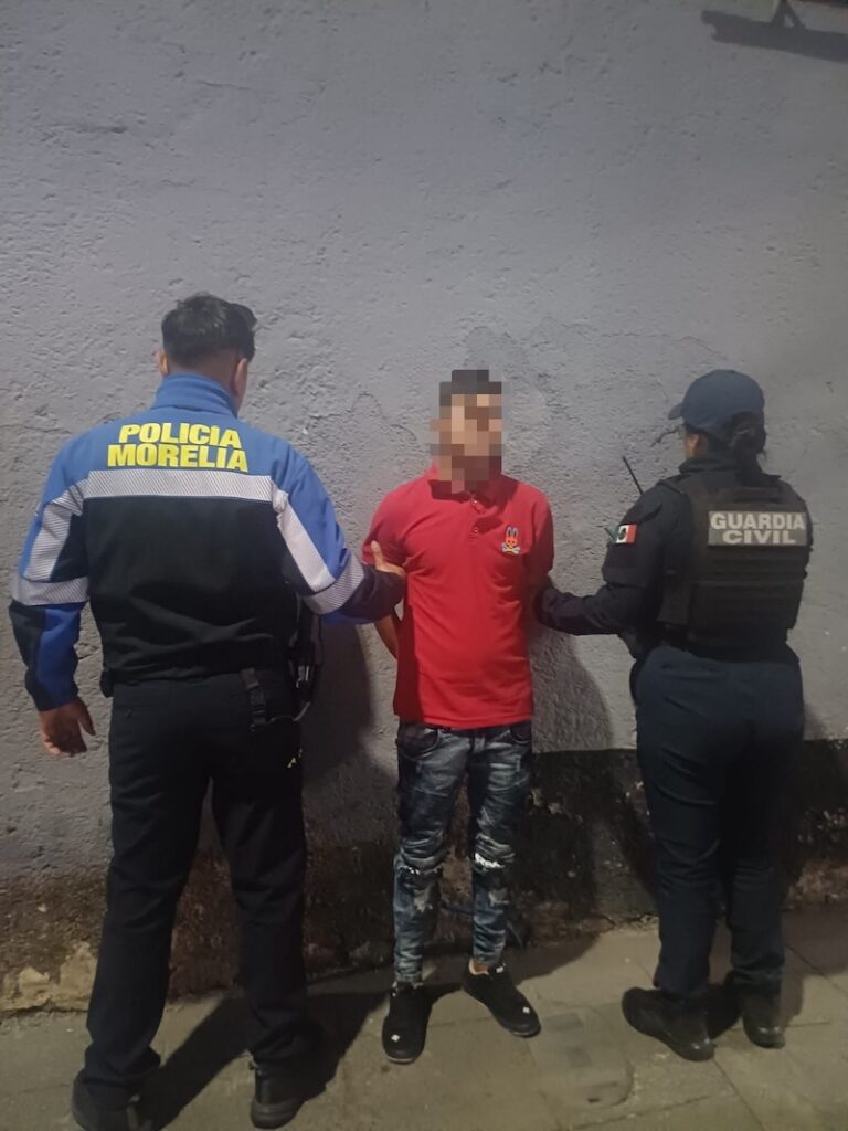Morelia, Mich., a 20 de abril de 2026.- Agentes de Policía Morelia, en coordinación con Guardia Civil, detuvieron a un masculino señalado por robo a tiendas OXXO, quien contaba con una orden de aprehensión vigente, en la colonia Elías Pérez Ávalos.