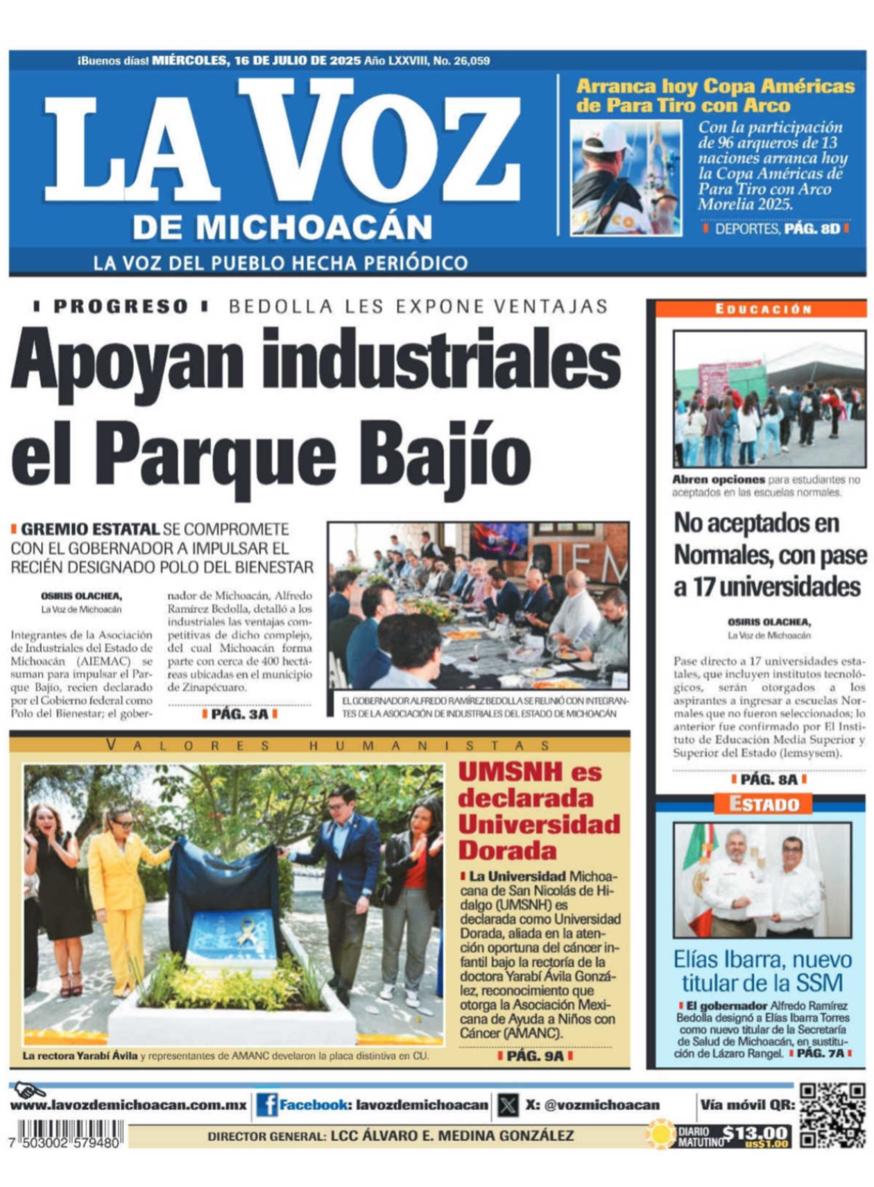Primeras Planas Estatales 16 de enero del 2025