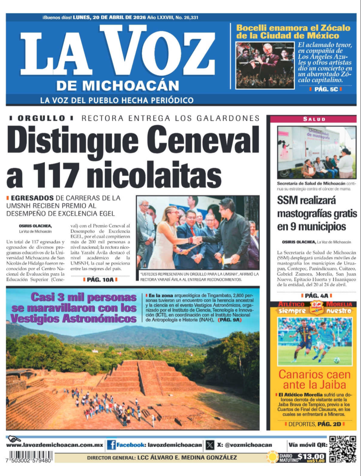 Primeras Planas Estatales 25 de marzo del 2026