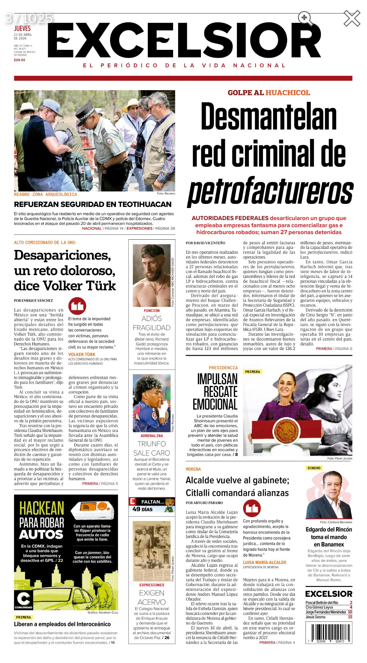 Primeras Planas Nacionales 20 de noviembre del 2025