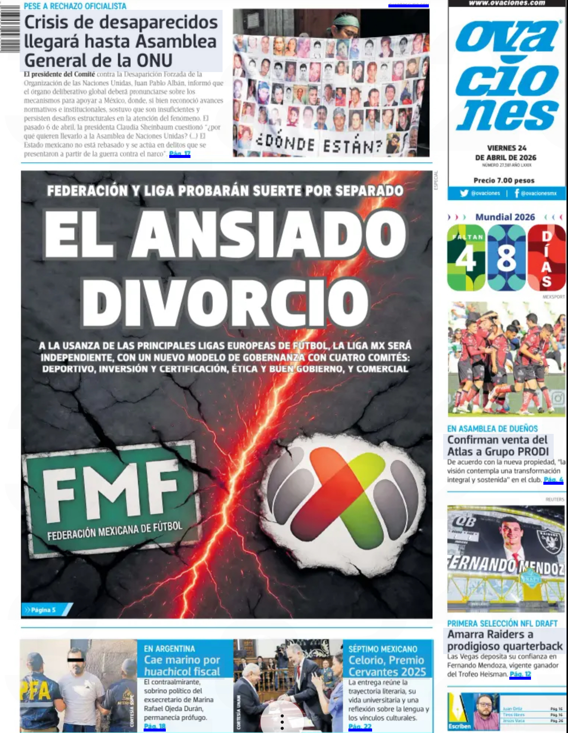 Primeras Planas Nacionales 20 de noviembre del 2025