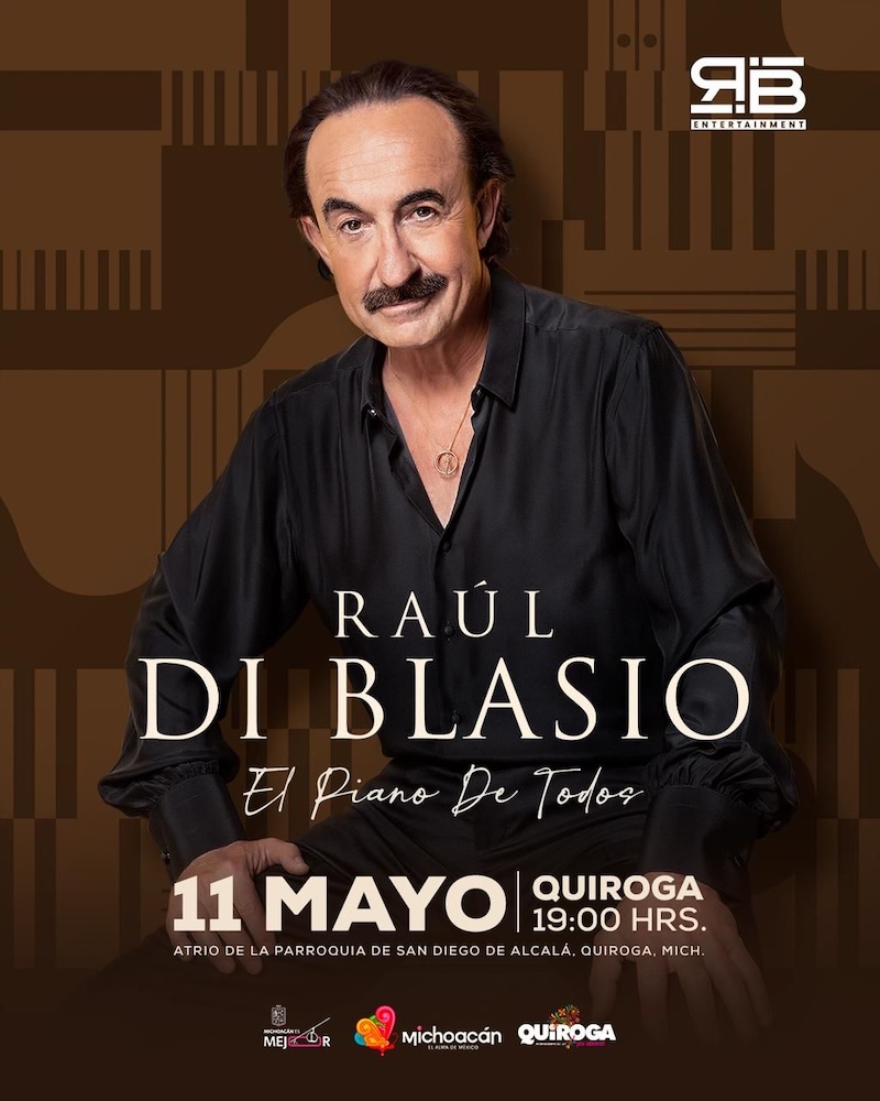 Morelia, Mich., a 7 de abril de 2025.- La sensibilidad, la música y el talento de Raúl di Blasio llegarán a Quiroga el próximo 11 de mayo con el concierto que ofrecerá un día después del Día de las Madres, informó la Secretaría de Turismo de Michoacán (Sectur), encabezada por Roberto Monroy García.