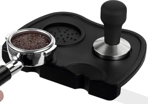 Si esta personita amante del café tiene una cafetera más profesional, necesita sí o sí un tapete de apisonamiento para que la cosa se le facilite.