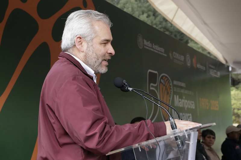 Acompañaron al gobernador el secretario del Medio Ambiente, Alejandro Méndez; la secretaria de Desarrollo Urbano y Movilidad, Gladyz Butanda Macías; la presidenta municipal de Angangueo, María Hilda Domínguez; así como las diputadas Emma Rivera Camacho y Mary Carmen Bernal Martínez.