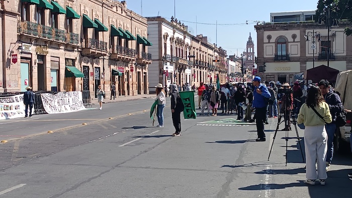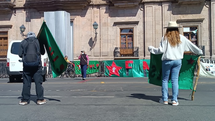 Este contingente partió desde la Fuente a Las Tarascas y avanzó sobre la avenida Madero, para instalarse frente a Palacio de Gobierno, sin que se registraran enfrentamiento con elementos de la Secretaría de Seguridad Pública (SSP), en contraste con días anteriores.