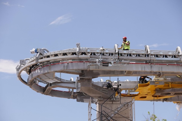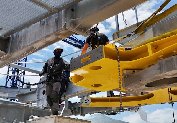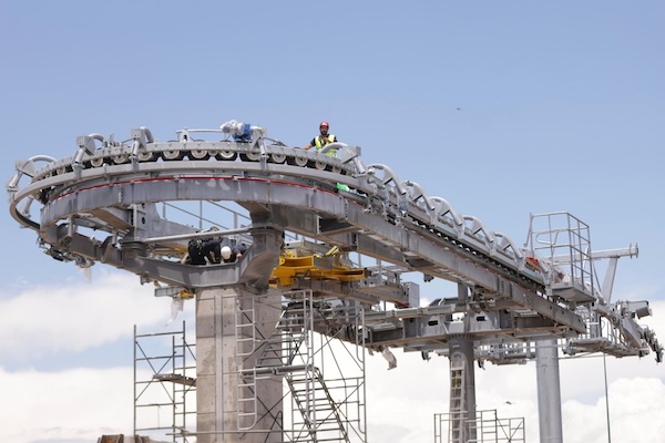 Este lunes se realizó la instalación de poleas donde irá el cable que recorre los 7.2 kilómetros que comprende la longitud del teleférico.