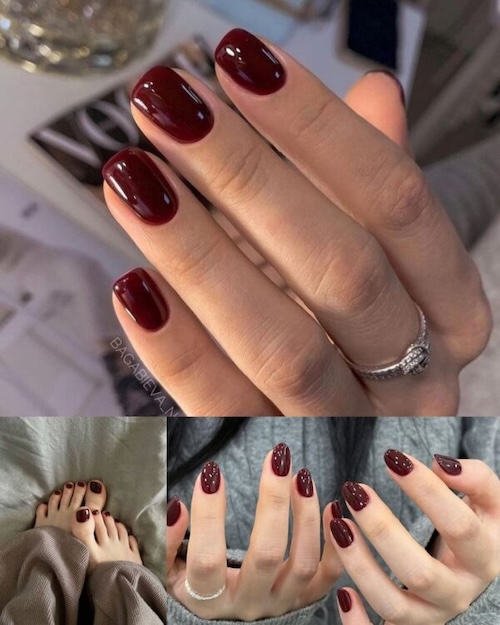 Nada grita “tengo mi vida arreglada” como una uña corta, limpia y en tonos vino, borgoña, café o verde olivo. Es la estética: “me veo fina sin usar uñas de 6cm como teibolera”. (si no tienes esos tonos, no te preocupes solo combina esmalte transparente con sombra de ojos y listo tienes un barniz de otro color).