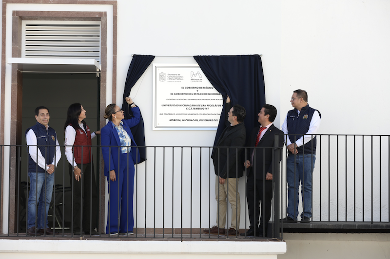 Morelia, Mich., a 15 de enero de 2025.- Las y los estudiantes de la Facultad de Letras de la Universidad Michoacana de San Nicolás de Hidalgo (UMSNH) contarán con nuevas aulas, luego de que la rectora Yarabí Ávila González y el secretario de Comunicaciones y Obras Públicas, Rogelio Zarazúa Sánchez, inauguraran dicho espacio que se construyó con apoyo del Gobierno del Estado.