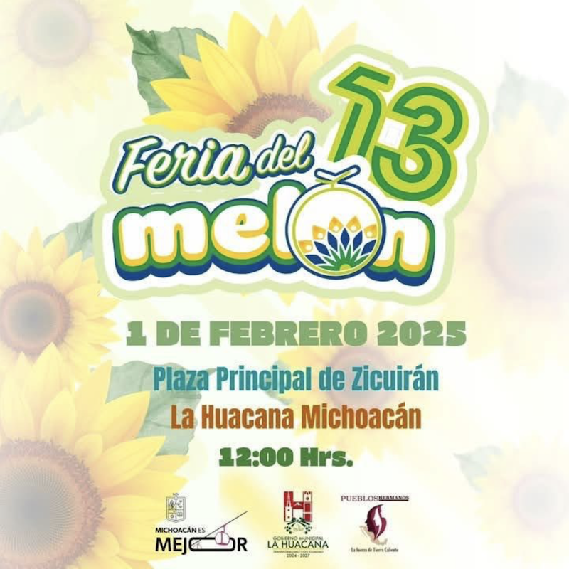 Morelia, Mich., a 21 de enero de 2025.- Zicuirán, tenencia del municipio de La Huacana, realizará la edición número 13 de su Expo Feria del Melón el próximo 1 de febrero en su plaza principal, informó Omar Gutiérrez Chávez, director de Obras y Proyectos de la Secretaría de Turismo de Michoacán (Sectur), en representación del titular Roberto Monroy García.